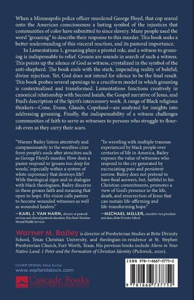 When a Minneapolis police officer murdered George Floyd, that cop seared on to the American consciousness a lasting symbol of the injustices that communities of color have submitted to since slavery. Many people used the word ""groaning"" to describe their response to this murder. This book seeks a better understanding of this visceral reaction, and its pastoral importance. In Lamentations 1, groaning plays a pivotal role, and a witness to groaning is indispensable to relief. Groans are sounds in search of such a witness. This points up the silence of God as witness, crystalized in the symbol of the anti-shepherd. The book ends with the stark, impending reality of baleful, divine rejection. Yet, God does not intend for silence to be the final result. This book probes several openings to a cruciform model in which groaning is contextualized and transformed. Lamentations functions creatively in canonical relationship with Second Isaiah, the Gospel narrative of Jesus, and Paul's description of the Spirit's intercessory work. A range of Black religious thinkers--Cone, Evans, Glaude, Copeland--are analyzed for insights into addressing groaning. Finally, the indispensability of a witness challenges communities of faith to serve as witnesses to persons who struggle to flourish even as they carry their scars.