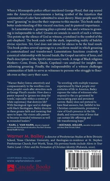 When a Minneapolis police officer murdered George Floyd, that cop seared on to the American consciousness a lasting symbol of the injustices that communities of color have submitted to since slavery. Many people used the word ""groaning"" to describe their response to this murder. This book seeks a better understanding of this visceral reaction, and its pastoral importance. In Lamentations 1, groaning plays a pivotal role, and a witness to groaning is indispensable to relief. Groans are sounds in search of such a witness. This points up the silence of God as witness, crystalized in the symbol of the anti-shepherd. The book ends with the stark, impending reality of baleful, divine rejection. Yet, God does not intend for silence to be the final result. This book probes several openings to a cruciform model in which groaning is contextualized and transformed. Lamentations functions creatively in canonical relationship with Second Isaiah, the Gospel narrative of Jesus, and Paul's description of the Spirit's intercessory work. A range of Black religious thinkers--Cone, Evans, Glaude, Copeland--are analyzed for insights into addressing groaning. Finally, the indispensability of a witness challenges communities of faith to serve as witnesses to persons who struggle to flourish even as they carry their scars.