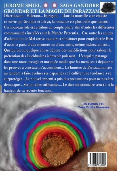Divertissant, Haletant et Intrigant... Dans la nouvelle voie choisie et suivie par Grondar et Lérya, la romance est plus belle que jamais... Un nouveau rôle est attribué au couple phare afin d'aider les différentes communautés installées sur la planète Pretentia... Car, outre les soucis d'adaptation, le Mal arrive toujours à s'insinuer pour empêcher le Bien d'avoir la paix, d'une manière ou d'une autre, même indirectement... Quelqu'un ou quelque chose dépose des malédictions pour saboter la prétention des Lucidusiens à devenir puissant... L'enquête patauge dans une mare aveugle et masquée tandis que les menaces à déjouer et les preuves à constater, s'accumulent... La lumière de Parazzam invite au tandem à faire évoluer ses capacités et à cultiver une tendance à se surprotéger... Le nouvel ennemi a pris des précautions pour ne pas être démasqué... Seront-elles suffisantes... Le duo missionnaire sera-t-il à la hauteur de sa récente fonction... Donc, le couple héros intégré dans la Fronde Casanova de l'Empire Blanc Bénédictux, a de nouvelles responsabilités pour être à la fois un résolveur de problèmes, un binôme diplomate et un conciliateur de justice... La première partie de la visite des régions de Pretentia permet de découvrir les enjeux positifs du Monde de Vie des Lucidusiens qui a tant à offrir... Entre autres choses, la découverte de la Cité médiévale de Cassias (Saissac), va avec un spectacle théâtral de troubadours et des retrouvailles avec d'anciens amis... Le Catharisme... Des passages érotiques et romantiques d'amour... Des spectres malveillants, la Sorcière Saurimonde et une source empoisonnée à Cybaret (Lastours)... Une affaire insolite dans un tribunal... Des histoires de fantômes chez les Francoeurs (Francs) où des ombres du passé rattrapent le fil du présent pour s'agripper à l'existence... La Cité de Minours (Minerve) en lien avec la réserve d'animaux à Sigenty (Sigean) sous fond de mythologie romaine primitive, d'alcoolisme et de maltraitance animale... Et mettre fin au siège du château de Terre-Sème par la négociation (Termes)... SMILE !