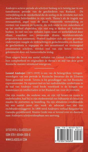 Leonid Andrejev (1871-1919) was een beroemd Russisch schrijver, een vertegenwoordiger van de Zilveren Eeuw in de Russische literatuur, en een grondlegger van het Russisch Expressionisme. Andreev studeerde rechten aan de Universiteit van Moskou en de Universiteit van Sint-Petersburg. In 1894 leidde een romantisch fiasco tot een zelfmoordpoging, met als gevolg een hartkwaal en een religieuze bekentenis. Om zijn moeder en broers en zussen, die naar Moskou waren verhuisd, te onderhouden, nam Andrejev zijn toevlucht tot tijdelijk werk als leraar en portrettist. Nadat hij zijn eindexamen aan de universiteit met succes had afgelegd, oefende Andrejev de volgende jaren rechten uit. Het jaar 1902 markeerde het begin van zijn journalistieke activiteiten, na de publicatie van zijn eerste korte verhaal "Bargamot en Garask" in 1898, dat literaire lof had geoogst van Maxim Gorky. De expressiviteit en symboliek van Andreevs taal riep een warme reactie op bij kunstenaars en intellectuelen van het pre-revolutionaire Rusland en leverde hem langdurige erkenning op. Andreev steunde actief de eerste Russische revolutie; hij werd gevangen gezet omdat hij onderdak bood aan activisten en geheime bijeenkomsten organiseerde, maar werd al snel vrijgelaten. Na de reactie van 1907 deed Andreev afstand van zijn revolutionaire opvattingen, in de overtuiging dat de opstand van de massa's alleen maar tot lijden kon leiden. De schrijver accepteerde de Oktoberrevolutie van 1917 niet. Zijn laatste werken bevatten pessimistische thema's en kritiek op de communistische machten van die tijd.