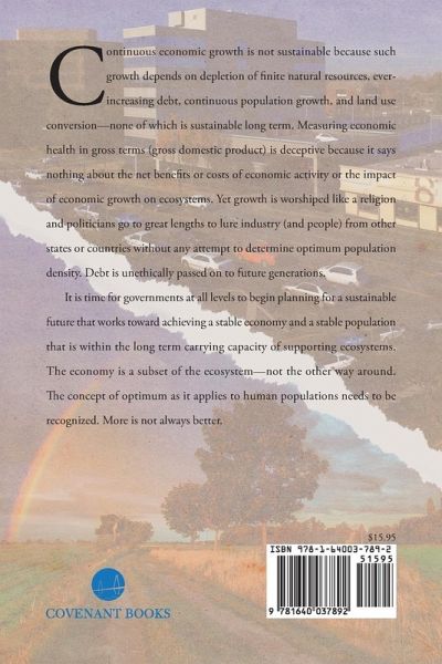 Continuous economic growth is not sustainable because such growth depends on depletion of finite natural resources, ever-increasing debt, continuous population growth, and land use conversion-none of which is sustainable long term. Measuring economic health in gross terms (gross domestic product) is deceptive because it says nothing about the net benefits or costs of economic activity or the impact of economic growth on ecosystems. Yet growth is worshiped like a religion and politicians go to great lengths to lure industry (and people) from other states or countries without any attempt to determine optimum population density. Debt is unethically passed on to future generations. It is time for governments at all levels to begin planning for a sustainable future that works toward achieving a stable economy and a stable population that is within the long term carrying capacity of supporting ecosystems. The economy is a subset of the ecosystem-not the other way around. The concept of optimum as it applies to human populations needs to be recognized. More is not always better.