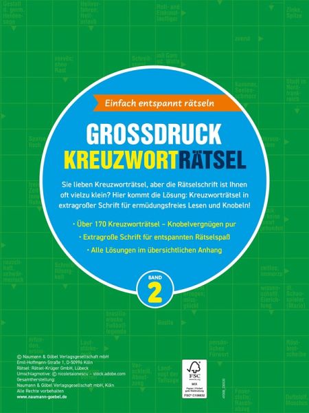 Genießen Sie stundenlangen Spaß und Herausforderungen mit unserem Kreuzworträtselbuch in großer Schrift. Unsere Rätsel sind speziell für eine einfache Lesbarkeit gestaltet und bieten eine angenehme Erfahrung für Augen und Geist. Mit einer Vielzahl von Schwierigkeitsgraden und Themen, ist unser Kreuzworträtselbuch perfekt für Rätselliebhaber jeden Alters. Es ist das ideale Geschenk für Menschen, die ihre geistige Fitness und Konzentration verbessern möchten. Bestellen Sie jetzt unser Kreuzworträtselbuch in großer Schrift und genießen Sie stundenlangen Rätselspaß!