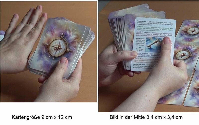 Entdecke die Faszination des Kartenlegens mit den "Großen Wegbegleiter Lenormandkarten" - Dein Schlüssel zur Kartendeutung. Tauche ein in die inspirierende Welt der Großen Wegbegleiter Lenormandkarten in deutscher Sprache mit Deutung. Sie sind dein idealer Begleiter für den Einstieg in die faszinierende Welt der Kartendeutung. Diese großformatigen Karten wurden speziell für Anfänger entwickelt, um den Lernprozess nicht nur intuitiv, sondern auch umfassend mit Deutungshilfen zu gestalten. Mit einer Größe von 90 × 120 mm bietet jede Karte Platz für mehrere Deutungsthemen in Textform. Als zentrales Bild wecken die Quadrolina Lenormandkarten die Intuition. Die kleinen, kunstvollen Bilder in der Mitte jeder Karte (hier in der Größe 3,4 cm x 3,4 cm) dienen als intuitiver Fokus, um die Bedeutung jeder Karte persönlich zu erschließen. Umfassende Anleitungstexte: Umgeben von hilfreichen Texten bieten die Karten alles, was du als Anfänger brauchst. Die obersten Texte zu Vergangenheit, Gegenwart und Zukunft auf jeder Karte helfen dir, die Karten in verschiedenen Kontexten zu lesen und zu verstehen - ideal, um die Dynamik von Ereignissen zu erkennen und deine Deutungsfähigkeiten zu verfeinern. Die "Gedanken Deutungstexte" helfen dir, deine eigenen Gedanken zu fokussieren oder herauszufinden, was andere denken. Tägliche Übungsansätze: Beginne mit ein bis drei Tageskarten, um die verschiedenen Bedeutungen einer Karte kennen zu lernen. Nutze den unteren Text der Karten als Leitfaden, um positive und herausfordernde Aspekte des Tages zu entdecken und deine intuitive und ausgewogene Deutungskompetenz zu schärfen. Schlüsselwörter und Zeitangaben: Jede Karte enthält Schlüsselwörter und Zeitangaben, die es ermöglichen, die Hauptthemen und zeitlichen Aspekte einer Frage schnell und effektiv zu erfassen. Diese Informationen helfen dir, Antworten in allen Lebensbereichen zu finden und deine Fragen gezielt zu klären. Hochwertige Materialien: Jede Karte ist mit einem seidenmatten Lack auf robustem 400g Karton veredelt, was sie langlebig und angenehm zu lesen/benutzen macht. Zusätzliche Lernressourcen: Ergänze deine Lernerfahrung mit dem Zugang zu einem umfangreichen Online-Blog, der dir weitere Interpretationen, Legesysteme und praktische Tipps bietet. Perfekt, um dein Wissen zu vertiefen und deine Fähigkeiten zu erweitern. Für wen sind diese Lenormandkarten geeignet? ¿ Beginner im Kartenlegen, die eine strukturierte und textreiche Lernumgebung schätzen. ¿ Visuell orientierte Lernende, die durch Bilder und farbige Texte lernen möchten, um ihre Intuition zu unterstützen. ¿ Spirituelle Entdecker, die ihren Alltag mit einer spirituellen Praxis bereichern möchten. Was macht die Großen Wegbegleiter Lenormandkarten so besonders? Durch den großzügigen Textanteil und das zentrale Bild jeder Karte bieten die Wegbegleiter eine unvergleichliche Möglichkeit, tief in die Lenormand-Deutung einzutauchen. Die strukturierte Anleitung auf jeder Karte hilft dir, deine intuitive Deutungsfähigkeit zu entwickeln und zu stärken. Der tägliche Umgang mit den Karten schärft deine intuitiven Fähigkeiten und macht dich sensibel für die subtilen Zeichen, die deine Lebensfragen beleuchten. Bist du bereit, deine intuitive Reise zu beginnen und die Kunst des Kartenlegens zu meistern? Lass die Großen Wegbegleiter Lenormandkarten dein Wegweiser sein und entdecke, wie du mit jeder Karte tiefer in die Welt deiner eigenen Intuition eintauchst. Öffne jetzt das Tor zu einer neuen Dimension der Selbstfindung und spirituellen Erleuchtung.