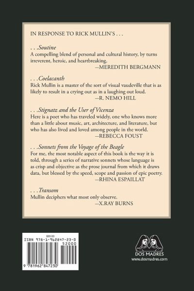Imagery and narrative harmonize the song of a world facing epochal change in Grotesque Singers, a new poetry collection by Rick Mullin. Voices in the choir evoke those of Herman Melville, Modest Mussorgsky, David Lynch, and others just beyond the range of name retrieval. The book orchestrates this tumult of expression such that clarity may arise in a reading sensitive to the nature of personal and communal collapse, and the lifelong journey toward redemption.¿ Grotesque Singers is divided into four sections, three anchored by a sonnet crown-a narrative series of sonnets linked by the repletion of last and first lines of verses, with the last line of the last sonnet repeating the first line of the first, completing the circuit. While the form is nearly identical in each of the crowns, the four vary widely in tone and voicing, each establishing themes along the lines of Walpurgisnacht, Memento mori, Wrack, and Redemption.¿ Along the way, a reader will experience terrifying stage appearances, a gallery of gothic pictures, encounters with a tattooed outcast, and remembrances of a Beatle and a beloved Cold War-vintage toy. Statements of the poet's dying mother recounting morning dreams-her wish for the world at manageable scale-speak to a new vision at the dying of the light. The consciousness of a lost, eternal chord in "The Obscure" reminds us that there is something like ineffable intelligence that cannot be doused by the artificial.¿Meanwhile, there are the depictions of all-too-effable hardships and dilemmas in poems such as "Firings," "Tattoo Man," and "After All." The evocation of loss and lament in these poems is met with a demand in "Fortinbras" that the lost spirit assert itself and speak for the world in its decline.¿ Grotesque Singers as a whole suggests a crown, an-end-at-the-beginning, an orbit around a planet that is itself turning. Chaos of the world is here, comprising memorable images a reader might arrange to realize an integral vision, one that may well culminate in the collection's closing picture of an old man, his his lame dog and the pair of hawks circling toward a burning oblivion overhead. ¿ In the sarcophagal words of the profane tenor Jackie Gleason, "And away we go."