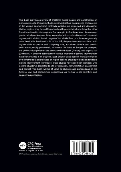 This book provides a review of problems during design and construction on problematic soils. Design methods, site investigation, construction and analysis of the various improvement methods available are explained and discussed. Various regions may have different soils with geotechnical problems that differ from those faced in other regions. For example, in Southeast Asia, the common geotechnical problems are those associated with construction on soft clays and organic soils, while in the arid region of the Middle East, problems are generally associated with the desert soils. In the US, the problems are associated with organic soils, expansive and collapsing soils, and shale. Laterite and lateritic soils are especially problematic in Mexico. Similarly, in Europe, for example, the geotechnical problems are associated with loess (France), and organic soil (Germany). A detailed description of various methods of ground improvement has been provided in 11 chapters. Each chapter deals not only with a description of the method but also focuses on region-specific ground problems and suitable ground improvement techniques. Case studies have also been included. One general chapter is dedicated to site investigation, instrumentation, assessment and control. This book will be of value to students and professionals in the fields of civil and geotechnical engineering, as well as to soil scientists and engineering geologists.