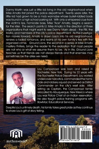 Danny Martin was just a little kid living in the old neighborhood when Mike Amato first joined the police department. Twenty years later, the little kid had grown to be a mob wannabe whose bullet-riddled body was found in a high school parking lot. With only a whispered clue from the victim's lips, homicide boss, Mike "Ace" Amato, begins a search for the killer. The search points Lt. Mike Amato in the direction of three organizations that might want to see Danny Marin dead - the FBI, the Mafia, and members of the city's police department. As the investigation moves forward, Amato is drawn back into his old neighborhood, renews a faded romance, and learns of his own family's ties with the organized crime. Ground Lions, the second in a series of Mike Amato mystery thrillers, brings the reader to the realization that most people are not who or what we assume them to be. As in life, Ground Lions teaches us that friends are not always friends and that enemies may sometimes be the allies we need.