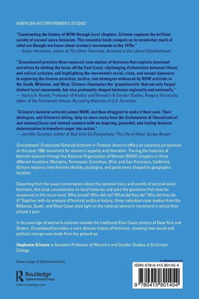 Groundswell: Grassroots Feminist Activism in Postwar America offers an essential perspective on the post-1960 movement for women's equality and liberation. Tracing the histories of feminist activism, through the National Organization of Women (NOW) chapters in three different locations: Memphis, Tennessee, Columbus, Ohio, and San Francisco, California, Gilmore explores how feminist identity, strategies, and goals were shaped by geographic location.