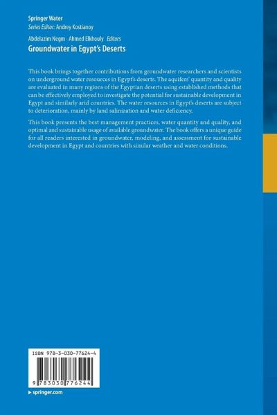 This book brings together contributions from groundwater researchers and scientists on underground water resources in Egypt's deserts. The aquifers' quantity and quality are evaluated in many regions of the Egyptian deserts using established methods that can be effectively employed to investigate the potential for sustainable development in Egypt and similarly arid countries. The water resources in Egypt's deserts are subject to deterioration, mainly by land salinization and water deficiency.