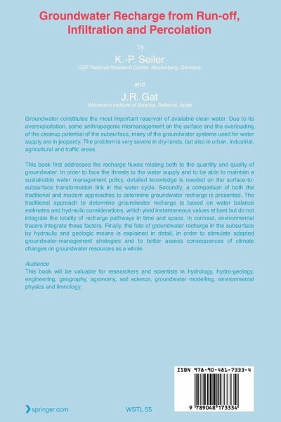 This book first discusses the recharge fluxes relating both to the quantity and quality of groundwater. In order to face the threats to the water supply and to be able to maintain a sustainable water management policy, detailed knowledge is needed in between others on the surface to subsurface transformation link in the water cycle. Secondly, the presentation and comparison of both the traditional and modern approach to determine groundwater recharge is discussed. The traditional approach to determine groundwater recharge, is based on water balance estimates and hydraulic considerations, which yield instantaneous values at best but do not integrate the totality of recharge pathways in time and space. In contrast, environmental tracers do integrate these factors. Finally, the fate of groundwater recharge in the subsurface by hydraulic and geologic means is discussed in detail, in order to stimulate adapted groundwater management strategies and to better assess consequences of climate changes on groundwater resources as a whole.