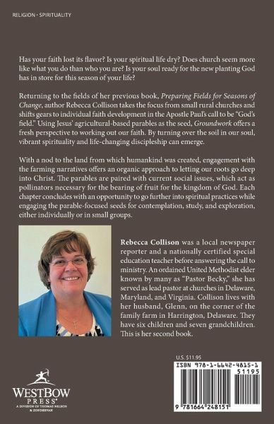 Has your faith lost its flavor? Is your spiritual life dry? Does church seem more like what you do than who you are? Is your soul ready for the new planting God has in store for this season of your life? Returning to the fields of her previous book, Preparing Fields for Seasons of Change, author Rebecca Collison takes the focus from small rural churches and shifts gears to individual faith development in the Apostle Paul's call to be "God's field." Using Jesus' agricultural-based parables as the seed, Groundwork offers a fresh perspective to working out our faith. By turning over the soil in our soul, vibrant spirituality and life-changing discipleship can emerge. With a nod to the land from which humankind was created, engagement with the farming narratives offers an organic approach to letting our roots go deep into Christ. The parables are paired with current social issues, which act as pollinators necessary for the bearing of fruit for the kingdom of God. Each chapter concludes with an opportunity to go further into spiritual practices while engaging the parable-focused seeds for contemplation, study, and exploration, either individually or in small groups.