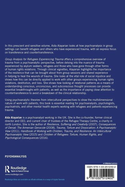 Group Analysis for Refugees Experiencing Trauma offers a comprehensive overview of trauma from a psychoanalytic perspective, before delving into the nuance of trauma experienced by asylum seekers, refugees and those who have gone through forced migration. Through clinical vignettes, Alayarian highlights the importance of the resilience that can be brought about from group sessions and shared experience in helping to heal the wounds of trauma. She looks at the vital role of social injustice in this trauma and shows how this can be directly applied to work with other groups experiencing human rights violations, destitution, and loss. She shows how looking at relational patterns as a means of understanding conscious, unconscious, and subconscious thought processes can provide essential breakthroughs with patients, as well as the importance of paying close attention to countertransference to avoid a breakdown of the clinical relationship.