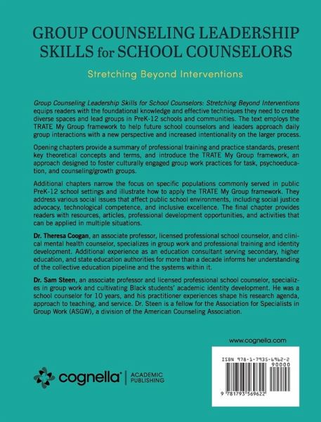 Group Counseling Leadership Skills for School Counselors: Stretching Beyond Interventions equips readers with the foundational knowledge and effective techniques they need to create diverse spaces and lead groups in PreK-12 schools and communities. The text employs the TRATE My Group framework to help future school counselors and leaders approach daily group interactions with a new perspective and increased intentionality on the larger process. Opening chapters provide a summary of professional training and practice standards, present key theoretical concepts and terms, and introduce the TRATE My Group framework, an approach designed to foster culturally engaged group work practices for task, psychoeducation, and counseling/growth groups. Additional chapters narrow the focus on specific populations commonly served in public PreK-12 school settings and illustrate how to apply the TRATE My Group framework. They address various social issues that affect public school environments, including social justice advocacy, technological competence, and inclusive excellence. The final chapter provides readers with resources, articles, professional development opportunities, and activities that can be applied in multiple situations.
