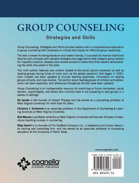 Group Counseling: Strategies and Skills provides readers with a comprehensive exploration of group counseling with emphasis on critical techniques for effective group leadership. The text is known for being hands-on and reader friendly. It successfully marries traditional theories and concepts with valuable strategies and sage advice that prepares group leaders for impactful practice. Readers also receive access to videos that show leaders demonstrating the skills discussed in the book. The ninth edition features new content related to the social justice movement as well as leading groups during times of crisis such as the global pandemic that began in 2020. Each chapter has been updated to include learning objectives, information on leading groups virtually, and case studies. The section about leading groups of children and adolescents has been expanded, and references throughout the text have been updated. Group Counseling is an indispensable resource for practicing or future counselors, social workers, psychologists, and others who currently lead or are preparing to lead groups in a variety of settings.