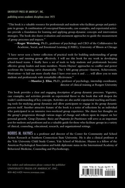 This book provides a clear and engaging description of group dynamic processes. Group Dynamics will serve as an important text for students and professors and as a valuable guide for those who facilitate groups in a variety of clinical, counseling, educational, research, and organizational settings.