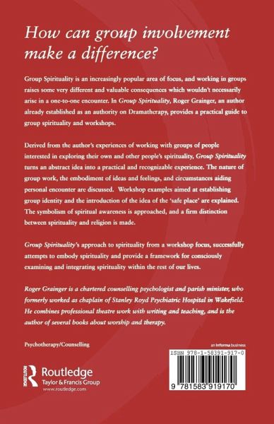 Group spirituality is an increasingly popular area of focus, and working in groups raises some very different and valuable consequences which wouldn't necessarily arise in a one-to-one encounter. In Group Spirituality, Roger Grainger, an author already established as an authority on Drama therapy, provides a functional guide to group spirituality and workshops. Derived from the authors' experiences of working with groups of people interested in exploring their own and other people's spirituality, Group Spirituality turns an abstract idea into a practical and recognizable experience. The nature of group work, the embodiment of ideas and feelings, and circumstances aiding personal encounter are discussed. Workshop examples aimed at establishing group identity and the introduction of the idea of the 'safe place' are explained. The symbolism of spiritual awareness is approached, and a firm distinction between spirituality and religion is made. Group Spirituality's approach to spirituality from a workshop focus, successfully attempts to embody spirituality and provide a framework for consciously examining and integrating spirituality within the rest of our life.