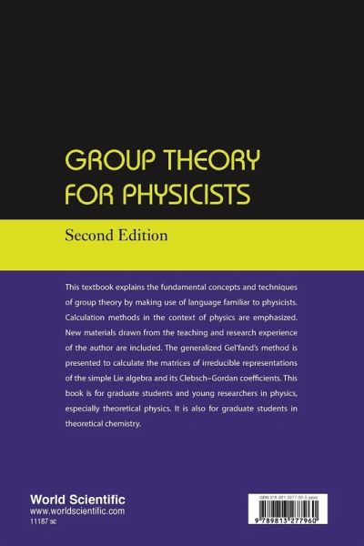 This textbook explains the fundamental concepts and techniques of group theory by making use of language familiar to physicists. Calculation methods in the context of physics are emphasized. New materials drawn from the teaching and research experience of the author are included. The generalized Gel'fand's method is presented to calculate the matrices of irreducible representations of the simple Lie algebra and its Clebsch-Gordan coefficients. This book is for graduate students and young researchers in physics, especially theoretical physics. It is also for graduate students in theoretical chemistry.
