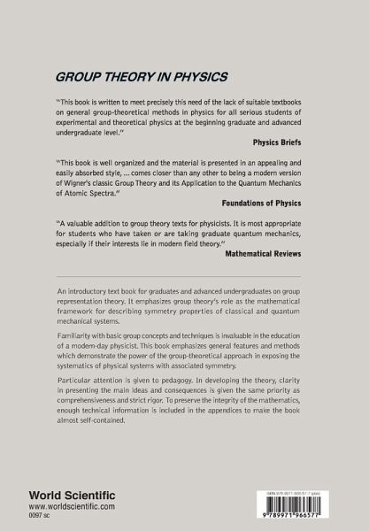 An introductory text book for graduates and advanced undergraduates on group representation theory. It emphasizes group theory's role as the mathematical framework for describing symmetry properties of classical and quantum mechanical systems. Familiarity with basic group concepts and techniques is invaluable in the education of a modern-day physicist. This book emphasizes general features and methods which demonstrate the power of the group-theoretical approach in exposing the systematics of physical systems with associated symmetry. Particular attention is given to pedagogy. In developing the theory, clarity in presenting the main ideas and consequences is given the same priority as comprehensiveness and strict rigor. To preserve the integrity of the mathematics, enough technical information is included in the appendices to make the book almost self-contained. A set of problems and solutions has been published in a separate booklet.