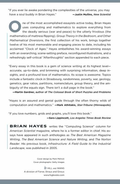 Brian Hayes is one of the most accomplished essayists active today-a claim supported not only by his prolific and continuing high-quality output but also by such honors as the National Magazine Award for his commemorative Y2K essay titled "Clock of Ages," published in the November/December 1999 issue of The Sciences magazine. (The also-rans that year included Tom Wolfe, Verlyn Klinkenborg, and Oliver Sacks.) Hayes's work in this genre has also appeared in such anthologies as The Best American Magazine Writing, The Best American Science and Nature Writing, and The Norton Reader. Here he offers us a selection of his most memorable and accessible pieces-including "Clock of Ages"-embellishing them with an overall, scene-setting preface, reconfigured illustrations, and a refreshingly self-critical "Afterthoughts" section appended to each essay.