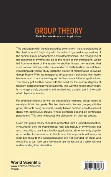This book deals with the role played by symmetry in the understanding of the physical world, beginning with the notion of geometric symmetries of the ancient Greek philosophers and mathematicians. The recognition of the existence of symmetries led to the notion of transformations, which led from one state of the system to another. It was then realized that such transformations, under the operation of multiplication, constitute an interesting set, whose study led to the branch of mathematics known as Group Theory. With the emergence of quantum mechanics, this theory became much more interesting and led to some additional applications. The theory got another boost with the need for of the internal degrees of freedom in describing physical systems. This way the notion of symmetry is no longer purely geometric and evolved into a useful tool in the study of all physical sciences. For practical reasons as well as pedagogical reasons, group theory is usually split into two parts. The first deals with discrete groups, with the group elements being countable, usually finite in number, while the second deals with continuous groups, whose elements depend on continuous parameters. This volumefocuses the discussion on discrete groups. Given that group theory should be presented from a unified perspective, involving not only the mathematical rigor and beauty of symmetries, but also the ability to use it as a tool for applications, either currently popular or expected to become so in the future, this approach will surely be more beneficial to the dedicated reader. It is not intended for those who would like to just look up a formula or use the results of a table, without understanding their derivation.