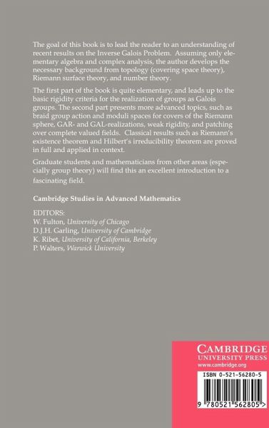 The goal of this book is to lead the reader to an understanding of recent results on the Inverse Galois Problem. Assuming only elementary algebra and complex analysis, the author develops the necessary background from topology, Riemann surface theory and number theory.