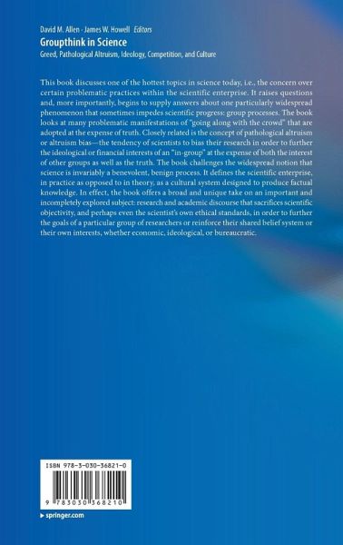This book discusses one of the hottest topics in science today, i.e., the concern over certain problematic practices within the scientific enterprise. It raises questions and, more importantly, begins to supply answers about one particularly widespread phenomenon that sometimes impedes scientific progress: group processes. The book looks at many problematic manifestations of "going along with the crowd" that are adopted at the expense of truth. Closely related is the concept of pathological altruism or altruism bias-the tendency of scientists to bias their research in order to further the ideological or financial interests of an "in-group" at the expense of both the interest of other groups as well as the truth. The book challenges the widespread notion that science is invariably a benevolent, benign process. It defines the scientific enterprise, in practice as opposed to in theory, as a cultural system designed to produce factual knowledge. In effect, the book offers a broad andunique take on an important and incompletely explored subject: research and academic discourse that sacrifices scientific objectivity, and perhaps even the scientist's own ethical standards, in order to further the goals of a particular group of researchers or reinforce their shared belief system or their own interests, whether economic, ideological, or bureaucratic.