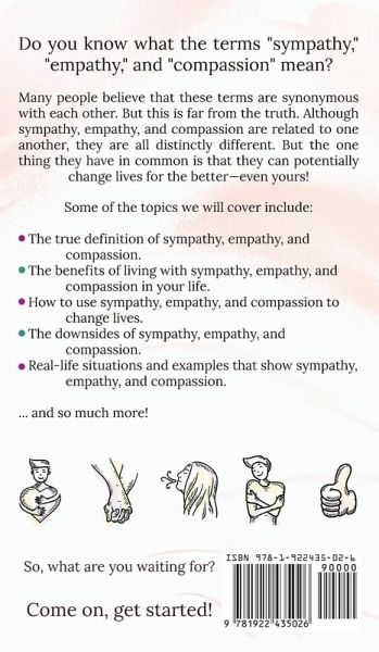 Do you know what the terms "sympathy," "empathy," and "compassion" mean? Many people believe that these terms are synonymous with each other. But this is far from the truth. Although sympathy, empathy, and compassion are related to one another, they are all distinctly different. But the one thing they have in common is that they can potentially change lives for the better-even yours! If you have been searching for ways to help other people out in more profound ways, this is the book for you. If you have been searching for ways to improve your life, this book can help you out with that too. This book will help you discover that sympathy, empathy, and compassion can make your life more complete and more fulfilling. Some of the topics we will cover include:The true definition of sympathy, empathy, and compassion. The benefits of living with sympathy, empathy, and compassion in your life. How to use sympathy, empathy, and compassion to change lives. The downsides of sympathy, empathy, and compassion. Real-life situations and examples that show sympathy, empathy, and compassion. ... and so much more! As you will discover by reading this book, there is so much more to these concepts than you may have first thought. By the end of this book, you will be able to understand sympathy, empathy, and compassion in a more profound way. You will also learn how these seemingly simple characteristics can be tools for positive change in life. So, if you can't wait to change your life for the better, purchase this book now and start your journey towards living with more sympathy, empathy, and compassion.