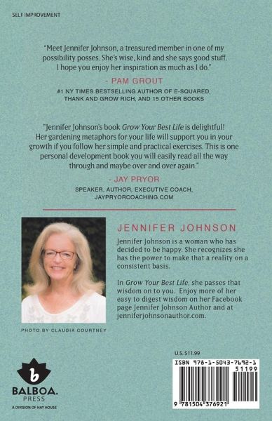 "Meet Jennifer Johnson, a treasured member in one of my possibility posses. She’s wise, kind and she says good stuff. I hope you enjoy her inspiration as much as I do." - Pam Grout, #1 NY Times Bestselling author of E-Squared, Thank and Grow Rich, and 15 other books "Jennifer Johnson's book Grow Your Best Life is delightful! Her gardening metaphors for your life will support you in your growth if you follow her simple and practical exercises. This is one personal development book you will easily read all the way through and maybe over and over again." - Jay Pryor, Speaker, Author, Executive Coach, www.jaypryorcoaching.com "When my friend of over 30 years asked me to illustrate her book, I was honored. As we collaborated on the images that would convey each chapter's message, Grow Your Best Life became a magnet encouraging me to illustrate in a new way--with my heart--to visually portray the wisdom and loving kindness that Jennifer embodies in her life and in her book." - Janice Kauder, fortunate friend, gardener, and illustrator Do you sometimes feel fabulous, uplifted, and powerful; like you are dancing with the Divine? And other times you feel crummy, overwhelmed, and frustrated? In Grow Your Best Life, Jennifer Johnson uses her own life experience to guide you along the path of life's journey to get and stay happy. She supports you in feeling good by providing a simple structure, practical tips, uplifted thinking, and baby-step exercises to help you stay in step with the Divine. You’ll want this book if: - you want to feel good more of the time - you like simple, practical help - you want to gift a friend with beauty and wisdom