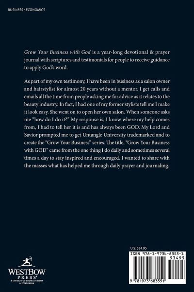 Grow Your Business with God is a year-long devotional & prayer journal with scriptures and testimonials for people to receive guidance to apply God's word.