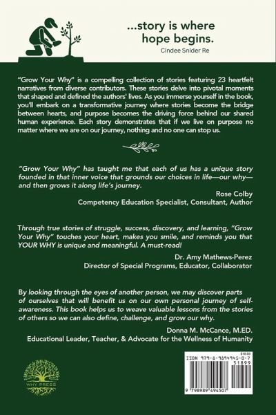 Unlock the Power of Stories through Personal Narratives about Living on Purpose 'Grow Your Why' is a compelling collection of stories featuring 23 heartfelt narratives from diverse contributors. These stories delve into pivotal moments that shaped and defined the authors' lives. As you immerse yourself in each of these stories, you'll discover that storytelling is more than a mere recounting of events; it's the heartbeat of our existence. The following contributing authors shared a story that made a difference in their lives as a chapter under one of the three sections. Section 1: Define Your Why What story defined who you are and your why? Craig Shapiro, Celeste Endo, Dr. Walter Greason, Dr. Ilene Winokur, Traci Browder, Melisa Hayes, Jillian DuBois Section 2: Journey Your Why What story challenged you to choose another path on your journey to your why? Rich Simpson, Nicole Biscotti, Hedreich Nichols, Erika Sandstrom, Charles Williams, Jennifer D. Klein, Noa Daniel, Kecia McDonald Section 3: Grow Your Why What story empowered you to go out of your comfort zone to grow your why? Dr. Sarah Thomas, Evo Hannan, Livia Chan, Dr. Sheldon Eakins, Stephanie Rothstein, Dr. Rachelle Dené Poth, Rita Wirtz, Federico Josué (Josh) Tovar Each author bares their soul, inviting you to decode the profound layers beneath their experiences. The authors demonstrate that our stories are not only the fabric of our existence, they are also the catalysts for connection, resilience, and an unyielding pursuit of meaning. 'Grow Your Why' is more than a book; it's an invitation to embark on a transformative journey where stories become the bridge between hearts, and purpose becomes the driving force behind our shared human experience. What emerges is a powerful message that living with purpose, regardless of where we find ourselves on life's journey, is an unstoppable force.