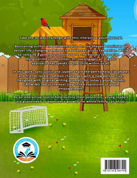 Take the 30-day challenge with this youth self-awareness journal. Bestselling author and philanthropist, Dr. Joe Shepard introduces a tool that lends reflection and empowerment for young audiences across the nation. While his works remain a bridge to life's most complex challenges, this journal offers a refreshing approach that speaks to the child within us all. In this work, his sons, Justin and Jayden Shepard share the pen to help classmates and friends tackle common challenges with a new perspective. Designed with original writing prompts for today's young minds, GROWING 360 is the next step in the expression of youth empowerment. As a fun guide of self-expression and awareness, this interactive youth journal is guaranteed to help boys and girls navigate a full spectrum growing adventure.