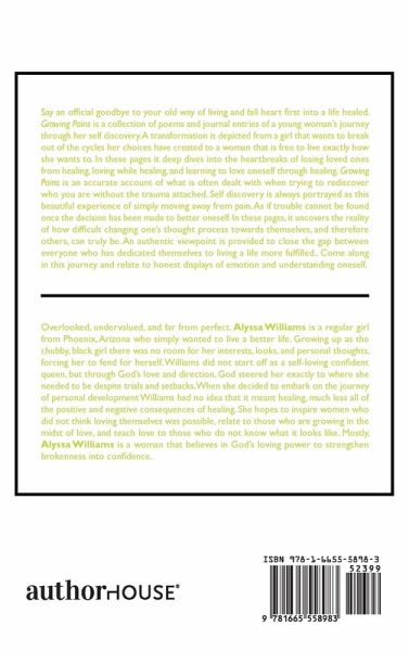 Say an official goodbye to your old way of living and fall heart first into a life healed. Growing Pains is a collection of poems and journal entries of a young woman's journey through her self discovery. A transformation is depicted from a girl that wants to break out of the cycles her choices have created to a woman that is free to live exactly how she wants to. In these pages it deep dives into the heartbreaks of losing loved ones from healing, loving while healing, and learning to love oneself through healing. Growing Pains is an accurate account of what is often dealt with when trying to rediscover who you are without the trauma attached. Self discovery is always portrayed as this beautiful experience of simply moving away from pain. As if trouble cannot be found once the decision has been made to better oneself. In these pages, it uncovers the reality of how difficult changing one's thought process towards themselves, and therefore others, can truly be. An authentic viewpoint is provided to close the gap between everyone who has dedicated themselves to living a life more fulfilled.. Come along in this journey and relate to honest displays of emotion and understanding oneself.
