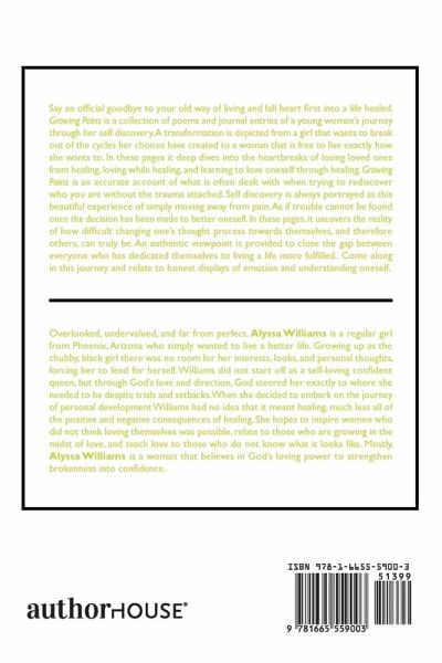 Say an official goodbye to your old way of living and fall heart first into a life healed. Growing Pains is a collection of poems and journal entries of a young woman's journey through her self discovery. A transformation is depicted from a girl that wants to break out of the cycles her choices have created to a woman that is free to live exactly how she wants to. In these pages it deep dives into the heartbreaks of losing loved ones from healing, loving while healing, and learning to love oneself through healing. Growing Pains is an accurate account of what is often dealt with when trying to rediscover who you are without the trauma attached. Self discovery is always portrayed as this beautiful experience of simply moving away from pain. As if trouble cannot be found once the decision has been made to better oneself. In these pages, it uncovers the reality of how difficult changing one's thought process towards themselves, and therefore others, can truly be. An authentic viewpoint is provided to close the gap between everyone who has dedicated themselves to living a life more fulfilled.. Come along in this journey and relate to honest displays of emotion and understanding oneself.