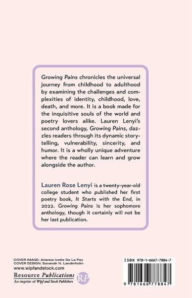 Growing Pains chronicles the universal journey from childhood to adulthood by examining the challenges and complexities of identity, childhood, love, death, and more. It is a book made for the inquisitive souls of the world and poetry lovers alike. Lauren Lenyi's second anthology, Growing Pains, dazzles readers through its dynamic storytelling, vulnerability, sincerity, and humor. It is a wholly unique adventure where the reader can learn and grow alongside the author.