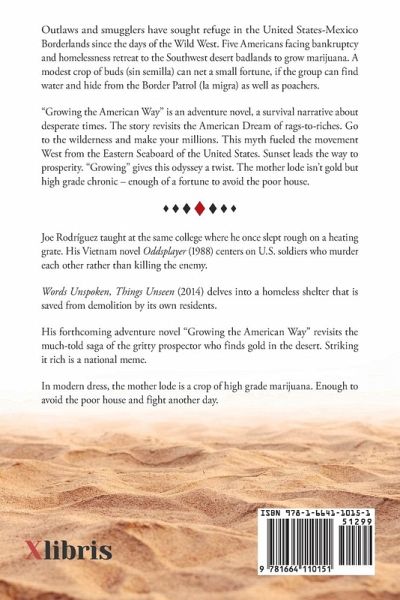 Outlaws and smugglers have sought refuge in the United States-Mexico Borderlands since the days of the Wild West. Five Americans facing bankruptcy and homelessness retreat to the Southwest desert badlands to grow marijuana. A modest crop of buds (sin semilla) can net a small fortune, if the group can find water and hide from the Border Patrol (la migra) as well as poachers. "Growing the American Way" is an adventure novel, a survival narrative about desperate times. The story revisits the American Dream of rags-to-riches. Go to the wilderness and make your millions. This myth fueled the…mehr