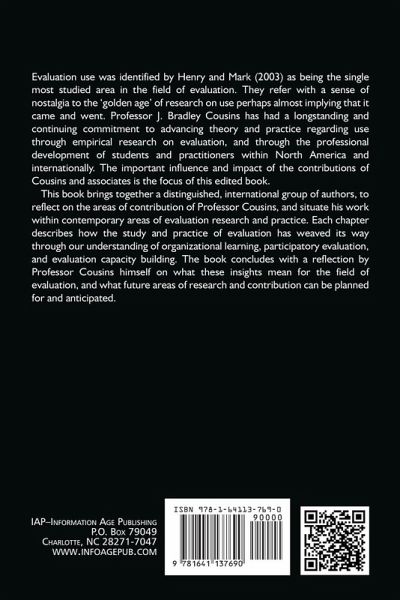 Evaluation use was identified by Henry and Mark (2003) as being the single most studied area in the field of evaluation. They refer with a sense of nostalgia to the 'golden age' of research on use perhaps almost implying that it came and went. Professor J. Bradley Cousins has had a longstanding and continuing commitment to advancing theory and practice regarding use through empirical research on evaluation, and through the professional development of students and practitioners within North America and internationally. The important influence and impact of the contributions of Cousins and associates is the focus of this edited book. This book brings together a distinguished, international group of authors, to reflect on the areas of contribution of Professor Cousins, and situate his work within contemporary areas of evaluation research and practice. Each chapter describes how the study and practice of evaluation has weaved its way through our understanding of organizational learning, participatory evaluation, and evaluation capacity building. The book concludes with a reflection by Professor Cousins himself on what these insights mean for the field of evaluation, and what future areas of research and contribution can be planned for and anticipated.
