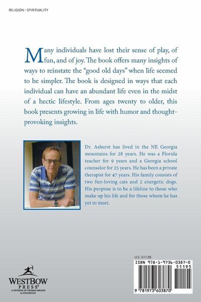 Many individuals have lost their sense of play, of fun, and of joy. The book offers many insights of ways to reinstate the "good old days" when life seemed to be simpler. The book is designed in ways that each individual can have an abundant life even in the midst of a hectic lifestyle. From ages twenty to older, this book presents growing in life with humor and thought-provoking insights.