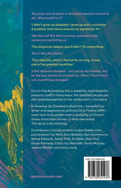 Growing Up Disabled in Australia is the fifth book in the highly acclaimed, bestselling Growing Up series. It includes interviews with prominent Australians such as Senator Jordon Steele-John and Paralympian Isis Holt, poetry and graphic art, as well as more than 40 original pieces by writers with a disability or chronic illness. Contributors include Dion Beasley, Astrid Edwards, Jessica Walton, Carly-Jay Metcalfe, Gayle Kennedy and El Gibbs.