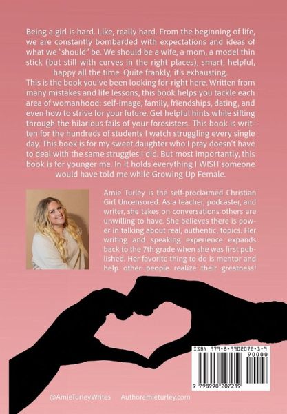 Being a girl is hard. Like, really hard. From the beginning of life, we are constantly bombarded with expectations and ideas of what we "should" be. We should be a wife, a mom, a model thin stick (but still with curves in the right places), smart, helpful, happy all the time. Quite Frankly, it's exhausting. This is the book you've been looking for-right here. Written from many mistakes and life lessons, this book helps you tackle each area of womanhood: self-image, family, friendships, dating, and even how to strive for your future. Get helpful hints while sifting through the hilarious fails of your foresisters. This book is written for the hundreds of students I watch struggling every single day. This book is for my sweet daughter who I pray doesn't have to deal with the same struggles I did. But most importantly, this book is for younger me. In it holds everything I WISH someone would have told me while Growing Up Female.