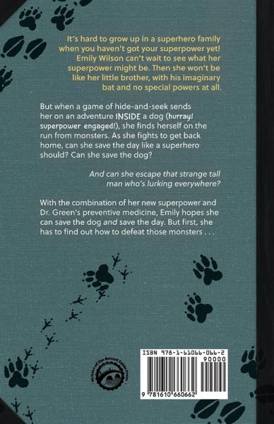It's hard to grow up in a superhero family when you haven't got your superpower yet! Emily Wilson can't wait to see what her superpower might be. Then she won't be like her little brother, with his imaginary bat and no special powers at all. But when a game of hide-and-seek sends her on an adventure INSIDE a dog (hurray! superpower engaged!), she finds herself on the run from monsters. As she fights to get back home, can she save the day like a superhero should? Can she save the dog? And can she escape that strange tall man who's lurking everywhere? With the combination of her new superpower…mehr