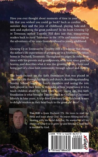 Have you ever thought about moments of time in your life that you wished you could go back? Such as carefree summer days and the joys of childhood, playing hide-and-seek and exploring the great outdoors? In his book Growing Up in Tennessee, author Timothy Hill does just that, transporting readers back to rural Tennessee in the 1970s and reminiscing on the adventures of his years from childhood to young adulthood. Growing Up in Tennessee by Timothy Hill is a memoir that shares the author's life experiences of growing up in a Southern Christian home in Decherd, Tennessee. Throughout its pages, he reflects on times with his parents and grandparents, who have since gone to heaven, and describes what it was like growing up on a farm and being part of a close-knit community through school and church. The book focuses on the faith foundation that was placed in Timothy's life through his family and church, describing attending Sunday School taught by family members and seeing the role faith played in their lives. A reminder of how importance it is to teach children about the Lord from a very young age, this faith foundation is what brought Timothy back to God and a Christian lifestyle in later years. A trip down memory lane, this book is sure to delight readers as they head back to the good ole' days! Tim Hill is from Decherd TN. He loves to read the Bible and learn about God. He enjoys fishing and relic hunting with his metal detector. He wanted to tell his stories of what it is to grow up and become a man that is molded by God.