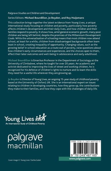 Introduction: Child Poverty and the Centrality of Schooling; Michael Bourdillon and Jo Boyden PART I: POVERTY AND THE LIVES OF GROWING CHILDREN 1. How Does Where Children Live Affect How They Develop? Evidence from Communities in Ethiopia and Vietnam; Paul Dornan and María José Ogando Portela 2. Family Socio-economic Status, Mother's Psychosocial Skills and Children's Human Capital: Evidence from Four Low- and Middle-Income Countries; Andreas Georgiadis and Priscila Hermida 3. 'I Am Dependent On My Children's Support': Risk and Protective Factors for Children Experiencing Adverse Events; María José Ogando Portela and Kirrily Pells 4. Gender, Agency and Poverty: Children's Everyday Experiences in Andhra Pradesh and Vietnam; Gina Crivello, Vu Thi Thanh Huong and Uma Vennam PART II: HOW DOES SCHOOLING HELP THE POOR? 5. Schooling and Cognitive Outcomes from Childhood to Youth: A Longitudinal Analysis; Caine Rolleston and Zoe James 6. Changes in Rural Children's Use of Time: Evidence from Ethiopia and Andhra Pradesh, India; Virginia Morrow, Yisak Tafere, and Uma Vennam 7. The Role of Formal Education in the Subjective Well-being of Young Teenagers in Rural and Urban Peru; Alexandra Cussianovich and Vanessa Rojas 8. Fulfilling the Promise of School Education? Factors Shaping Education Inequalities in Ethiopia, India, Peru and Vietnam; Helen Murray 9. How Much Difference Does School Make and For Whom? A Two-Country Study of the Impact of School Quality on Educational Attainment; Sofya Krutikova, Caine Rolleston and Elisabetta Aurino 10. Ethnic Minority Children's and Adults' Perceptions and Experiences of Schooling in Vietnam: A Case Study of the Cham H'roi; Vu Thi Thanh Huong 11. Educational Opportunities and Learning Outcomes of Children in Peru: A Longitudinal Model; Santiago Cueto, Juan León, and Ismael G. Muñoz 12. Reflections: Inequality, School and Social Change; Michael Bourdillon and Jo Boyden