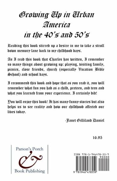 For many people the idea of small town urban life existed only behind the screens of television as millions watched the fictitious comedic affairs of the small-town characters from "Mayberry, "on a weekly basis. The show's popularity had some "big city "dwellers longing for such a cozy place, and urban dwellers, feeling blessed by their Divine providence. Urban cities speckled the map across the Nation. But for those living in Cleveland, Tennessee, during the 40's and 50's, their lifestyle was much the same as the residents of Mayberry. Every small town has a history built around its legends and folklore. The celebrations, the secrets, the legends, and folklore that are revealed in this book are as much a part of the city's history as its citizens.This book, Growing Up in Urban America In The 40's and 50's shares stories that draws the reader back in time to the carefree days of his or her own childhood. A time of innocence where family, community, and country were significant. The author, Charles Bowlin, is a life-long resident of Cleveland, Tn. His book is an easy read that will entertain, inform, and inspire the reader. His detailed accounts of small town life in urban South Cleveland documents history of the area, but will resonate with readers from all walks of life. For those from similar backgrounds, it will offer a time to reflect and reconnect with a simpler time. The book also provides those from larger cities to imagine a modest, but somehow fortunate time. I believe you will enjoy the innocent yet valuable tales that fill the pages of this book. I am very proud of the author, my Father, and am pleased that he chose to share his memories for many to appreciate. Let me suggest that you grab a glass of sweet tea and head to the porch with this book. The written words may remind you to breathe a little deeper and find your own place of serenity as you reminisce about the good ole days. Karen Michele Welch
