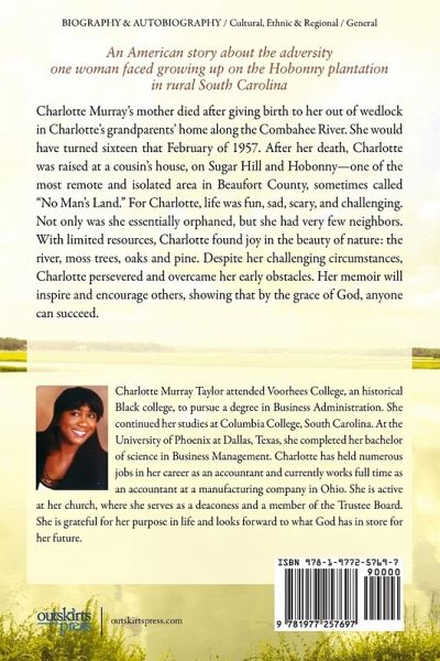 Charlotte Murray's mother died after giving birth to her out of wedlock in Charlotte's grandparents' home along the Combahee River. She would have turned sixteen that February of 1957. After her death, Charlotte was raised at a cousin's house, on Sugar Hill and Hobonny-one of the most remote and isolated area in Beaufort County, sometimes called "No Man's Land." For Charlotte, life was fun, sad, scary, and challenging. Not only was she essentially orphaned, but she had very few neighbors. With limited resources, Charlotte found joy in the beauty of nature: the river, moss trees, oaks and pine. Despite her challenging circumstances, Charlotte persevered and overcame her early obstacles. Her memoir will inspire and encourage others, showing that by the grace of God, anyone can succeed.