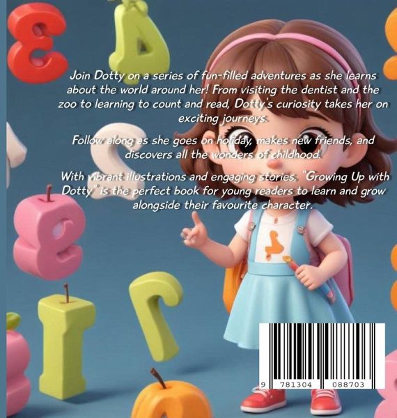 "Growing Up with Dotty": Join Dotty on a series of fun-filled adventures as she learns about the world around her! From visiting the dentist and the zoo to learning to count and read, Dotty's curiosity takes her on exciting journeys. Follow along as she goes on holiday, makes new friends, and discovers all the wonders of childhood. With vibrant illustrations and engaging stories, "Growing Up with Dotty" is the perfect book for young readers to learn and grow alongside their favorite character.