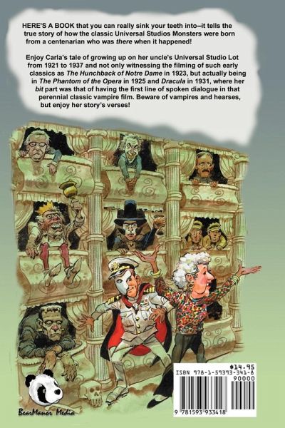 A lovely book that tells the true story of how the classic Universal Studios Monsters were born from a centenarian who was there when it happened. Enjoy Carla's tale of growing up on her uncles Universal Studio Lot from 1921 to 1937 and not only witnessing the filming of such early classics as The Hunchback of Notre Dame in 1923, but actually being in The Phantom of the Opera in 1925 and Dracula in 1931, where her "bit" part was that of having the first line of spoken dialogue in that perennial classic vampire film. Beware of vampires and hearses, but enjoy her story's verses! Wonderfully illustrated by MAD Magazines Jack Davis and Hermann Mejia. Foreword provided by master of horror and sci-fi, Ray Bradbury.