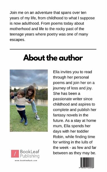 Ella invites you to read through her personal poems and join her on a journey of loss and joy. She has been a passionate writer since childhood and aspires to complete and publish her fantasy novels in the future. As a stay at home mum, Ella spends her days with her toddler Robin, while finding time for writing in the lulls of the week - as few and far between as they may be.