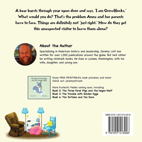 A bear bursts through your open door and says, "I am Growlilocks." What would you do? That's the problem Anna and her parents have to face. Things are definitely not "just right." How do they get this unexpected visitor to leave them alone? Check out this new take on the children's classic tale, adapted from Goldilocks and the Three Bears. And don't forget to watch for more books in this Funtastic Fables series.