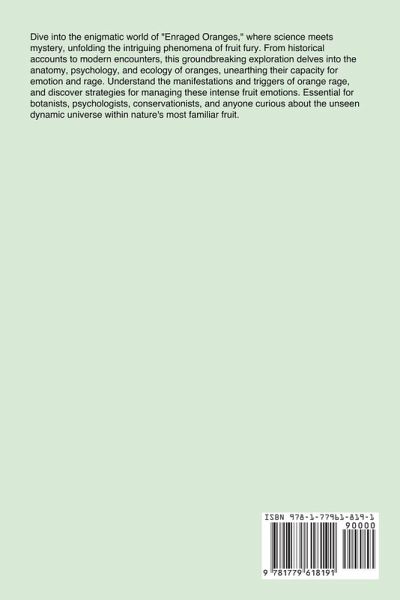 **Back-of-the-book Summary:**Dive into the enigmatic world of Enraged Oranges, where science meets mystery, unfolding the intriguing phenomena of fruit fury. From historical accounts to modern encounters, this groundbreaking exploration delves into the anatomy, psychology, and ecology of oranges, unearthing their capacity for emotion and rage. Understand the manifestations and triggers of orange rage, and discover strategies for managing these intense fruit emotions. Essential for botanists, psychologists, conservationists, and anyone curious about the unseen dynamic universe within natures most familiar fruit.…mehr