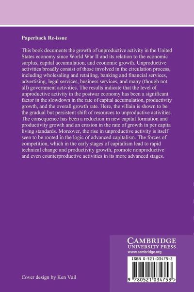 This book documents the growth of unproductive activity in the United States economy since World War II and its relation to the economic surplus, capital accumulation, and economic growth. Unproductive activities broadly consist of those involved in the circulation process, including wholesaling and retailing, banking and financial services, advertising, legal services, business services and many (though not all) government activities. The results indicate that the level of unproductive activity in the postwar economy has been a significant factor in the slowdown in the rate of capital accumulation, productivity growth and the overall growth rate. Here, the villain is shown to be the gradual but persistent shift of resources to unproductive activities. The consequence has been a reduction in new capital formation and productivity growth and an erosion in the rate of growth in per capita living standards. Moreover, the rise in unproductive activity is itself seen to be rooted in the logic of advanced capitalism. The forces of competition, which in the early stages of capitalism lead to rapid technical change and productivity growth, promote non-productive and even counterproductive activities in its more advanced stages.