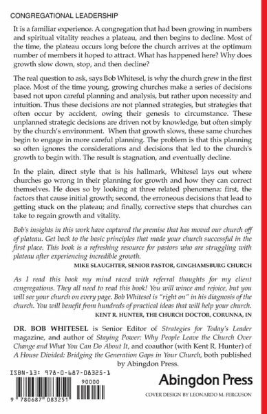 A congregation that had been growing in numbers and spiritual vitality reaches a plateau, and then begins to decline. What has happened? Whitesel explains where churches go wrong planning for growth and how they can correct themselves by looking at three related phenomena: the factors that cause initial growth; the erroneous decisions that lead to getting stuck on the plateau; and corrective steps they can take to regain growth and vitality.